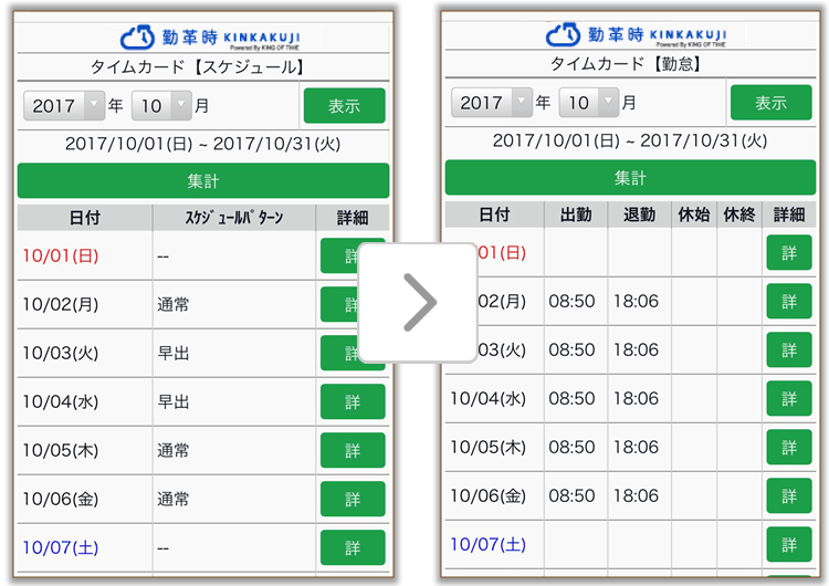 、自分のタイムカード、スケジュール、有給休暇の残日数も確認できます。